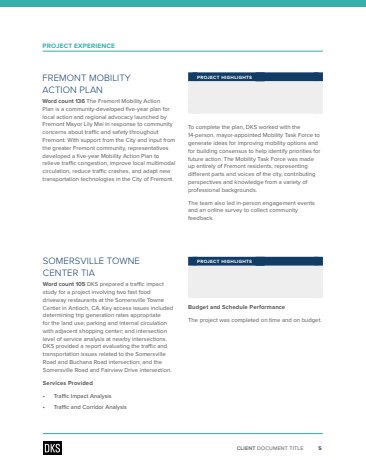 The marketing team at DKS Associates was looking for a template for their proposal documents. They were using several different layouts, with no unified branding. I was tasked with creating a branded InDesign template that would work for many different kinds of proposal requirements and would be easy for the distributed team to use. I was the art director for this project, working closely with the rest of the Visual Communication group to create and coordinate our ideas into a usable template.