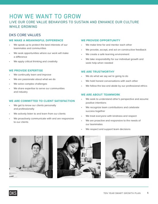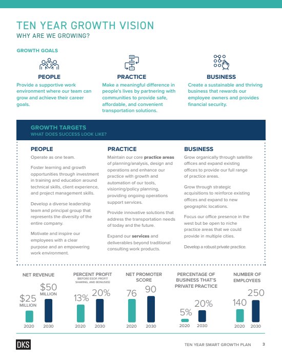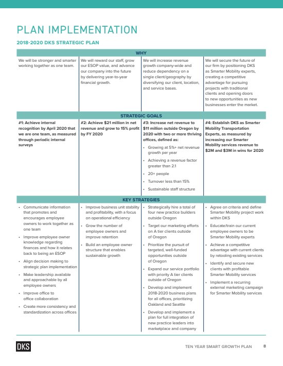 As part of their regular reports, the DKS Associates Executive Team needed a document to capture their vision for the next ten years of the company. I worked closely with the CEO and COO to create a framework for the board and DKS employees.
